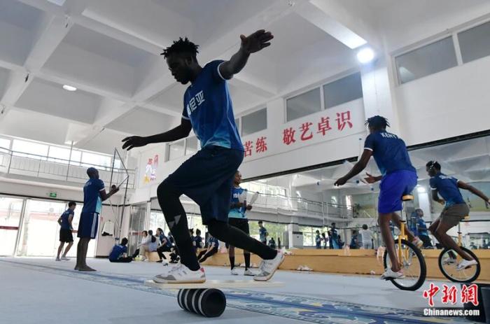 外国学员在吴桥学杂技。中新社记者 翟羽佳 摄