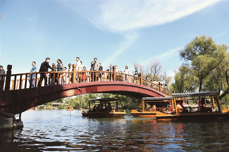 为保障游客游玩体验,我市针对“双节”旅游高峰,承德避暑山庄景区制定专项工作方案与预案,在丽正门加装引导护栏保障游客有序入园,在正宫区、湖区的道路狭窄处、桥梁处增加疏导人员,通过监控关注烟雨楼、金山、热河泉等景点客流,人员聚集时即刻疏导、广播分流;同时对一线工作人员开展服务礼仪培训,推进“笑脸行动”,全面维修维护旅游服务设施、清扫环境卫生,并调配全系统两级机关人员补充到一线岗位,用细致服务让游客游得舒心、玩得安心。