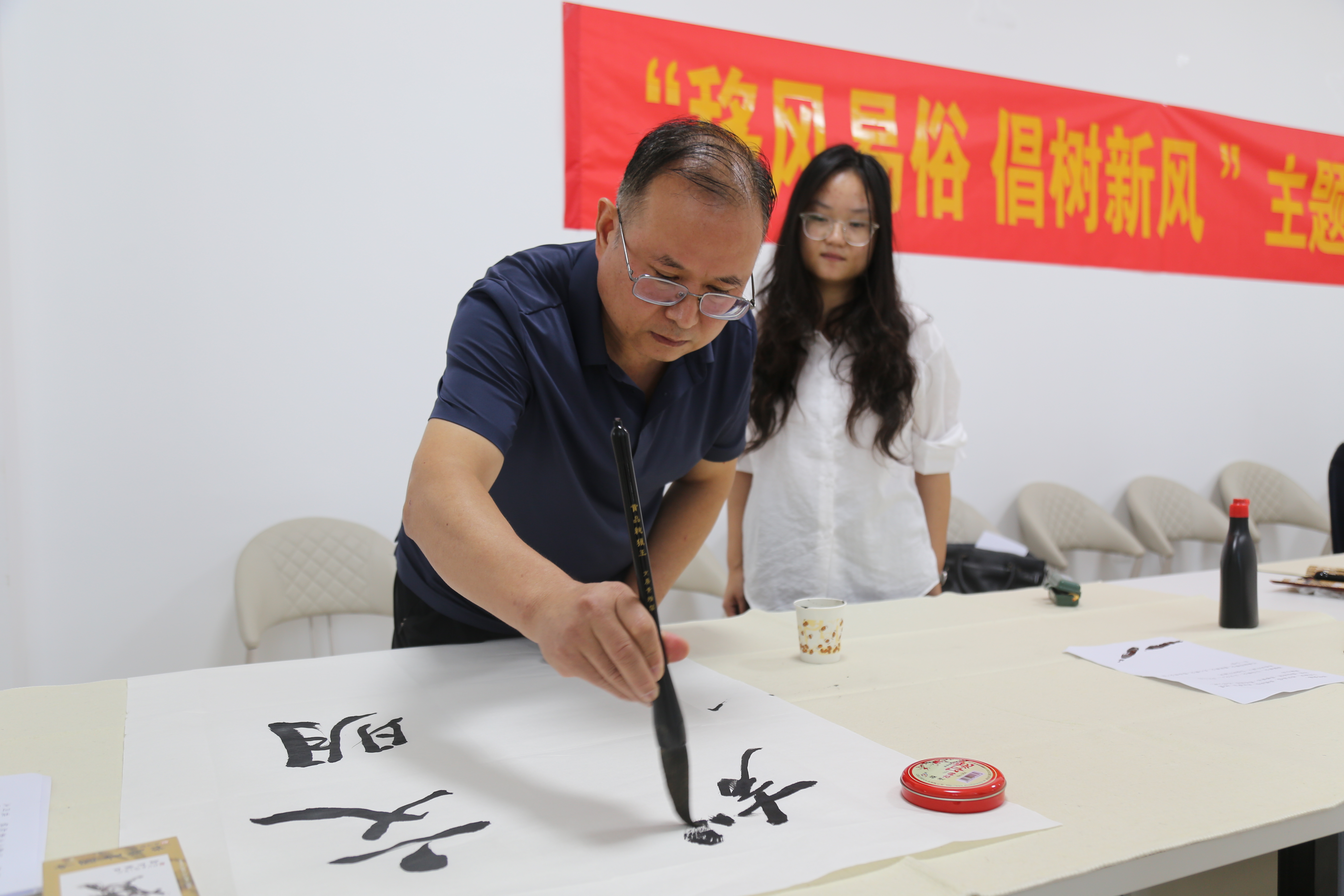 保定日报讯(记者王辛于 通讯员张旭宁)蠡县“移风易俗 倡树新风”主题书画笔会近日在该县新时代文明实践中心举办,10余名书画爱好者齐聚一堂,以笔墨为媒,共绘文明新风画卷。