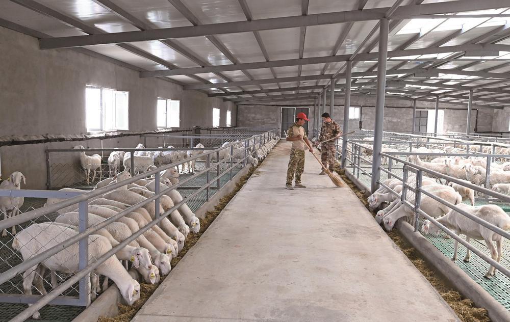 在且末县阿羌镇昆仑牧业有限公司,唐山援建的8个高标准养殖大棚促进了当地畜牧业的发展。
