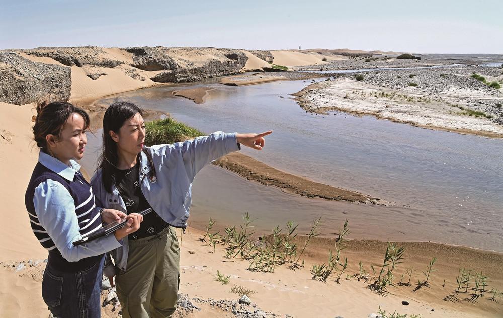 援疆专技人才正在与当地水利系统干部巡查车尔臣河,进一步排查河道管理范围内的“四乱”问题。