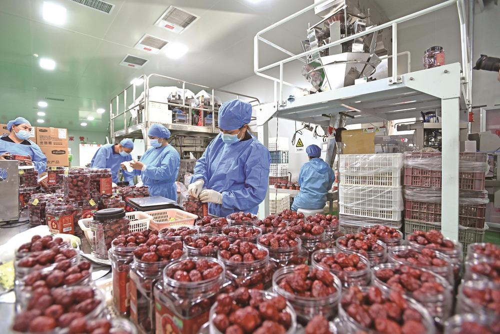 且末是红枣种植大县,第十批唐山援疆干部人才援助当地加工企业引进设备,促进企业增产,带动枣农增收。