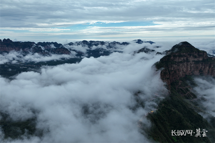 近日的连绵降雨,洗彻了东太行百里画廊的千峰万壑。当最后一滴雨水渗入山岩,奇迹,便在山谷间醒来。充沛的水汽蒸腾而上,遇冷成云,在山风的驱策下,化作一条横亘百里的“白练”,环绕着京娘湖的碧波,缠绕着东太行的绝壁,开始了它无声的舞蹈。