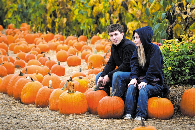 10月11日,人们参观加拿大里士满一处农场的南瓜园。加拿大各地的南瓜农场在秋季广受欢迎,人们纷纷前往采摘南瓜,为万圣节做准备。 新华社发(梁森 摄)