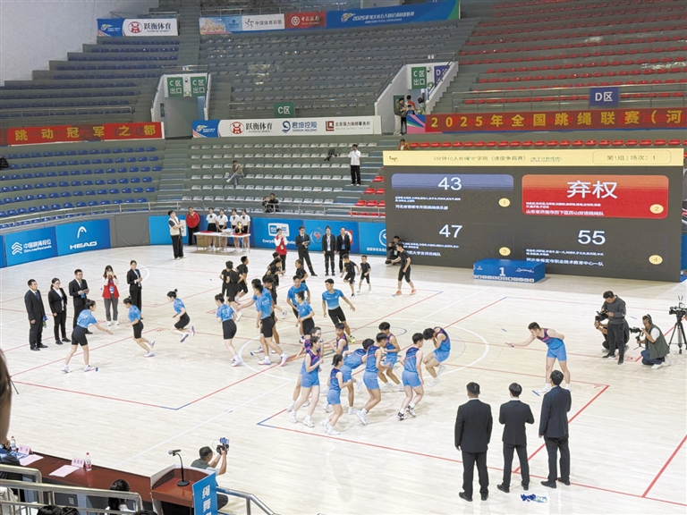 与此同时,3分钟10人长绳“8”字跳项目中,保定市职业技术教育中心一队展现出超强团队协作能力,队员们衔接几乎零失误,绳子甩动的呼呼声与脚步声形成整齐韵律,最终以357次的成绩夺冠。