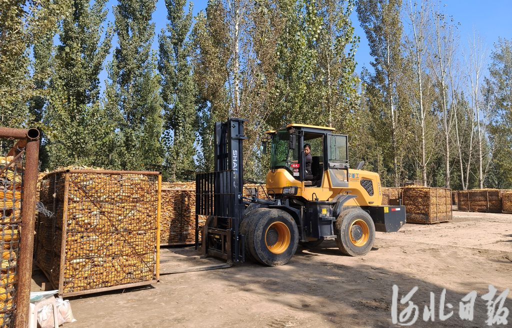 10月14日,沧州任丘市乐民种植服务专业合作社的晾晒场上,不见地趴式堆放的玉米小山,取而代之的是一排排整齐的钢管玉米筐。筐里的玉米黄澄澄,让人看着心情愉悦。