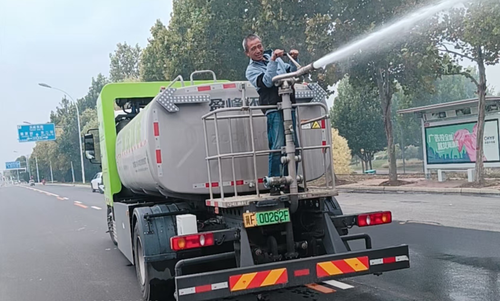 危急时刻,孙国良正驾驶洒水车执行路面作业。发现火情后,他果断将洒水车停靠至安全区域,快速设置临时警示标识疏导交通,随即登上操作平台启动高压水枪。凭借公司定期开展的消防实训经验,孙国良深知电动车锂电池起火的凶险,火势蔓延快且易复燃,必须快速处置。他调整水枪角度,将高压水柱对准火焰根部持续喷射,先扑灭外围明火阻断蔓延,再切换低压水流对电池区域降温,全程操作规范有序。
