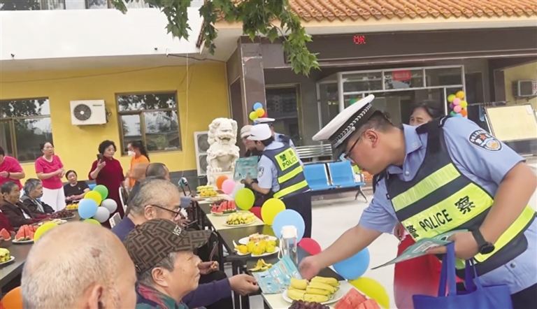 在送上交通安全知识的同时,民警还带来了鸡蛋、水果、糕点等慰问品。他们反复叮嘱老人们要时刻将安全放在心上,抵制不文明交通行为。