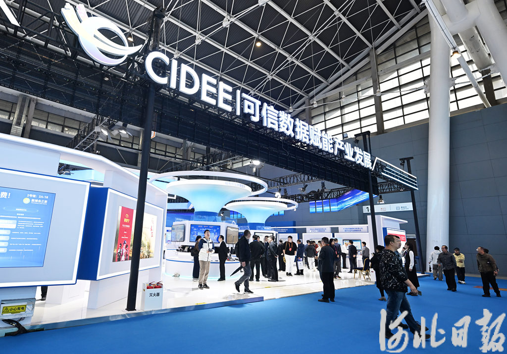 在秦皇岛市大数据有限公司展位,总经理杜峰忙着解答参观者的咨询。他们开发的“能址星图”数据产品已在河北省公共资源交易中心挂牌上架,被22家新能源企业购买,合同金额达2650万元。
