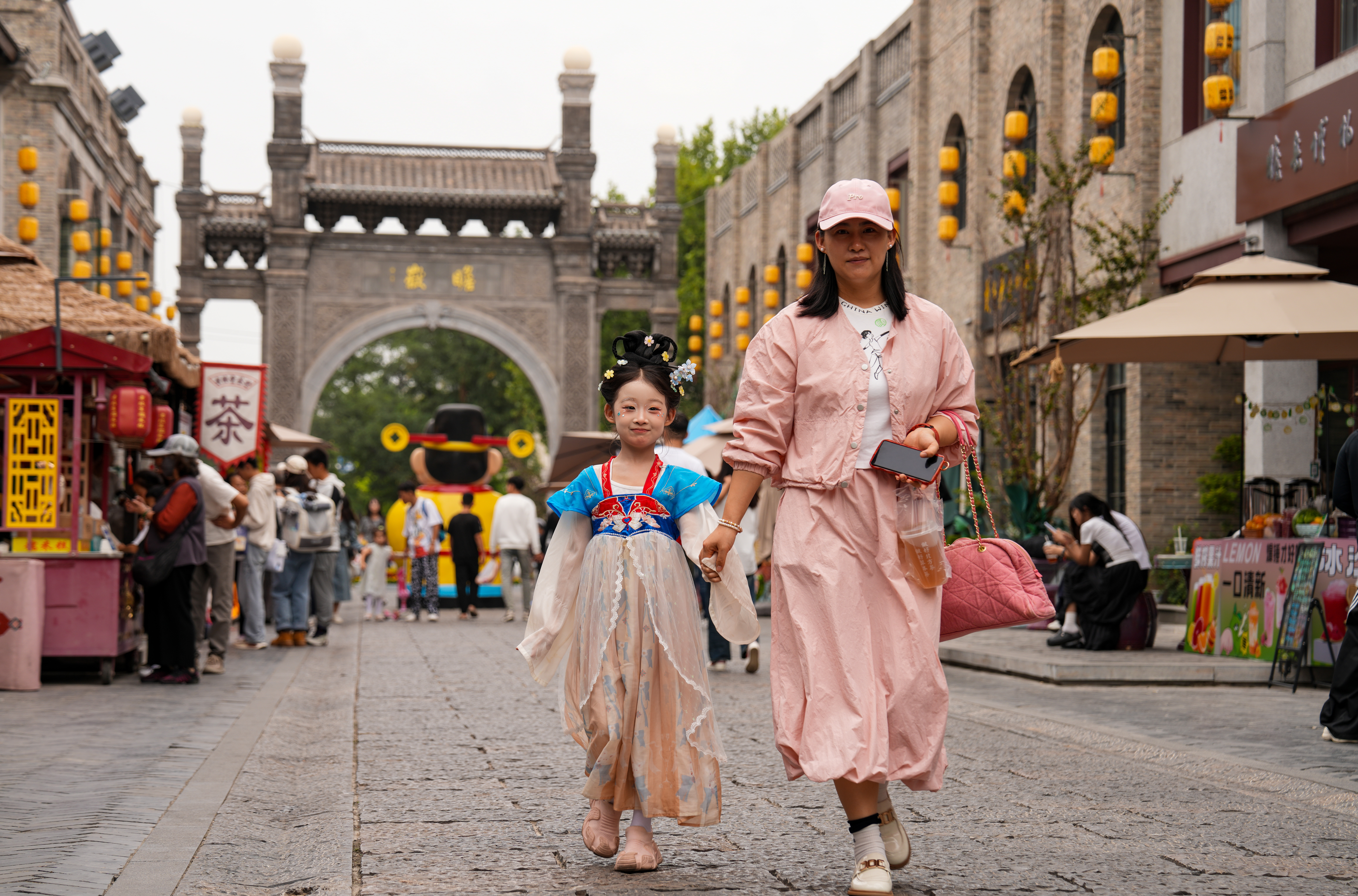 10月1日,游客在国家级旅游休闲街区保定西大街游玩,感受保定古城风貌。河北日报记者 许佳奇摄