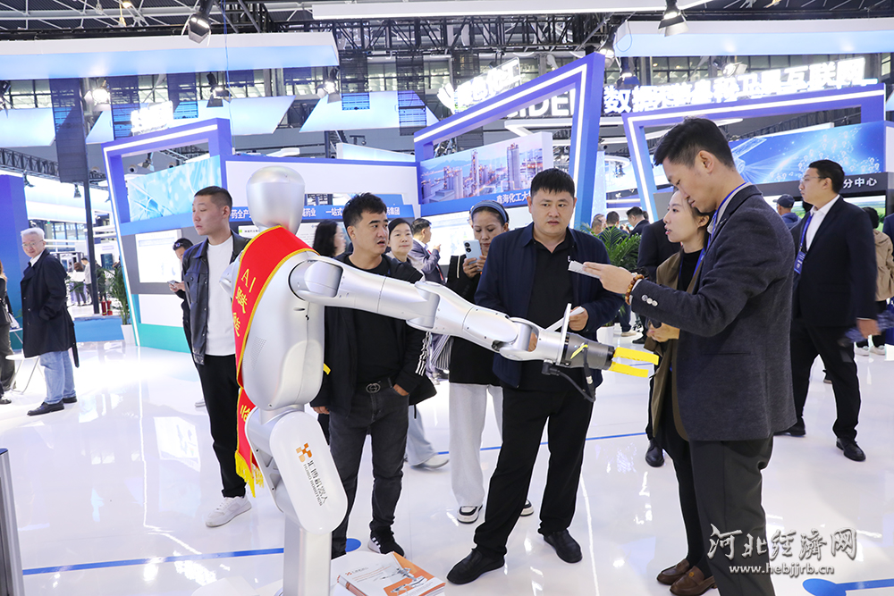走进数字产业生态馆,现代钢铁、电子信息、机器人、空天信息卫星互联网等多个产业交织出一幅数字河北的生动图景。