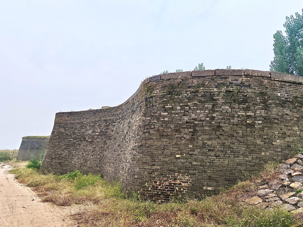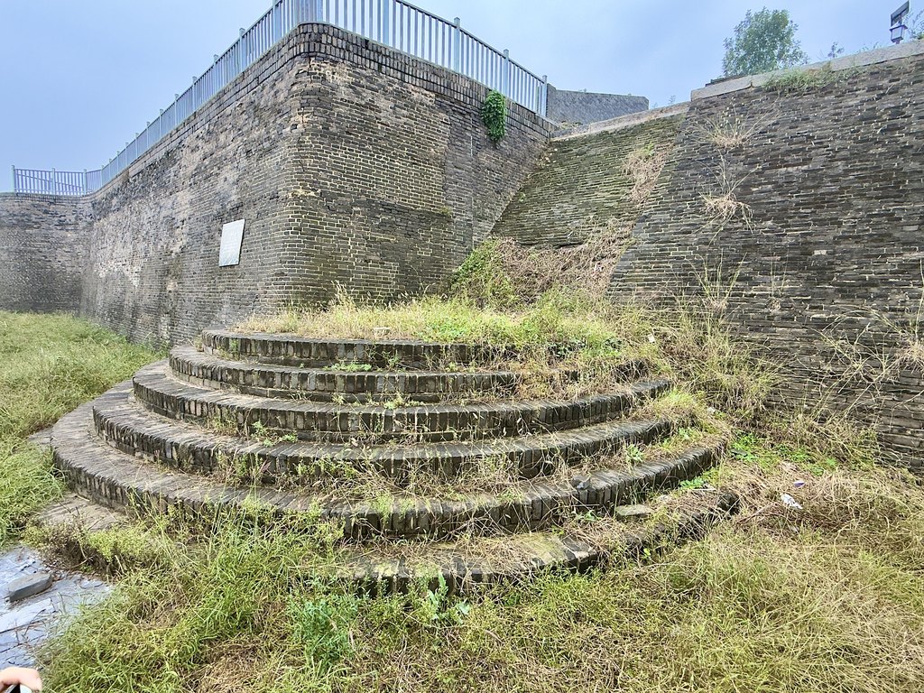 油坊码头的青砖驳岸与沿岸险工的叠砌坝体