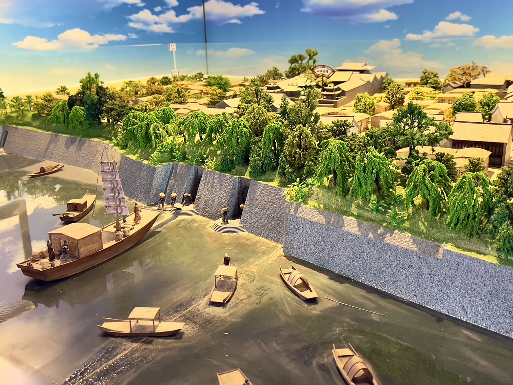 油坊码头沙盘展现了古代船只往来运输的繁荣景象。河北日报见习记者崔玉洁摄