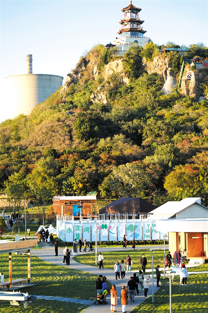 时值周末,许多游客来到位于北京市石景山区的“永定河集”,在这里逛市集,爬石景山,赏永定河畔风景,乐享秋日美好时光。