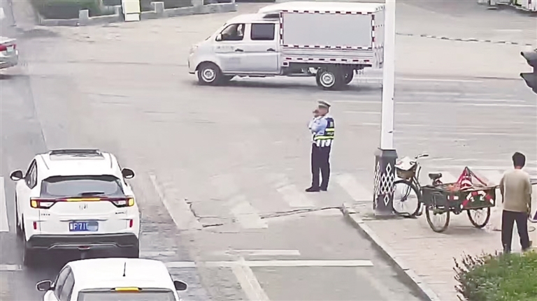 保定晚报讯(记者耿静)10月27日,保定市民的微信朋友圈里纷纷转发点赞一段视频,在曲阳车站路口,一名交警怀里抱着一个幼童,在路口来回踱步疏导交通,这一幕正好被路口的监控视频以及路过车辆的行车记录仪拍了下来。