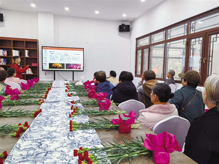 竞秀公园里秋景如画,“健康插花护老情”主题公益活动以“医、媒、园”三方合作为支撑,为银龄群体量身打造健康生活指南服务。河北大学附属医院老年医学科主任肖暖带来《用习惯防疾病 健康中老年》专题讲座,结合秋季气候特点与中老年群体需求,系统传授防寒保暖、情绪调节等疾病预防实用方法。公园技师王鹏讲解绿萝等常见家庭植物的养护技巧,分享植物摆放与情绪调节、食欲促进的生活智慧,老人们在专业指导下挑选花材、构思造型,将对生活的热爱融入插花创作。