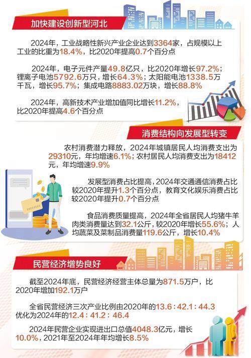 2024年,国家级专精特新“小巨人”企业达到409家,比2020年增长2.8倍;截至2024年底,民营经济经营主体总量为871.5万户,比2020年增加192.1万户;2024年,全省社会物流总额为9.3万亿元,物流业总费用与地区生产总值的比率为14.0%,为历年来最低水平……这张“十四五”沉甸甸的成绩单,彰显了河北高质量发展成色。