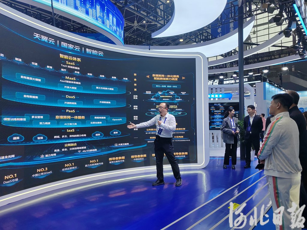 10月17日,在2025中国国际数字经济博览会上,河北电信的工作人员正在向参展商介绍公司算力布局及应用情况。河北日报记者方素菊摄