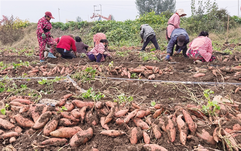 “在家门口干活,每天能挣150元到200元,既能照顾家里,又能有稳定收入,比出去打工踏实多了。”太平村村民李海涛一边麻利地装箱,一边笑着说,“看着一筐筐的红薯运出去,能卖个好价钱,我们干活更有劲头了。现在村里不少人都在基地务工,大家靠着种红薯日子越过越红火。”