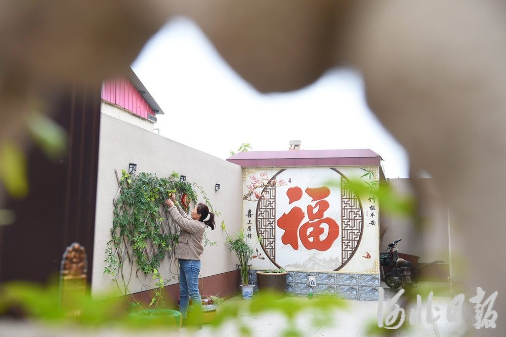 近日,邢台市南和区白佛村村民师巧英在庭院里管护花草。河北日报记者 赵永辉摄