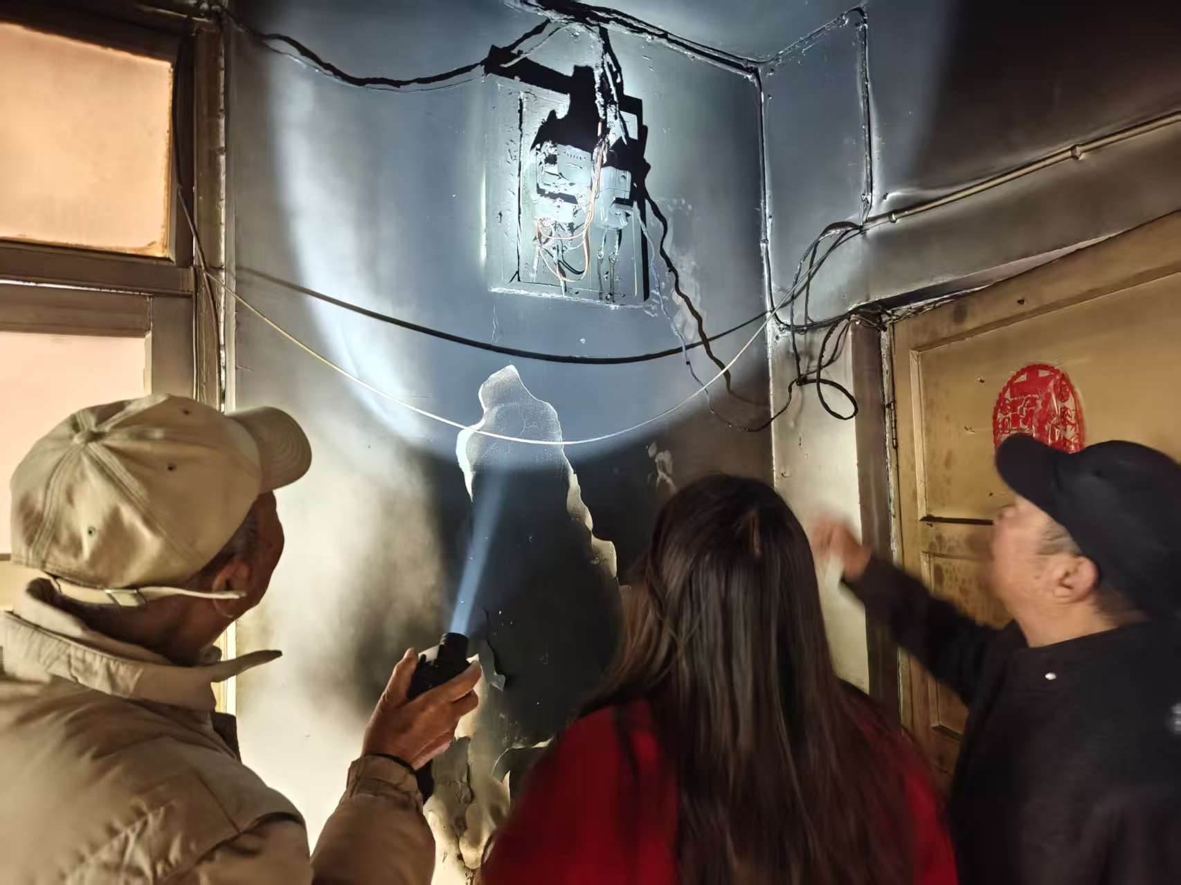 事发当日,年过六旬的刘先生发现家中电表突然起火,情急之下立即向社区寻求帮助。社区工作人员抵达现场后,首先确认明火已被老人初步扑灭,随即展开紧急处置:一边细致检查电表周边线路,排查残留火星隐患,严防二次事故发生;一边提醒老人不要移动烧毁的电表及周边物品,并用手机拍摄现场照片、视频,与供电部门取得联系。很快,供电维修人员抵达现场,经专业检修后更换了损毁电表,并对周边老化线路进行全面排查和加固处理,老人家中供电恢复正常。