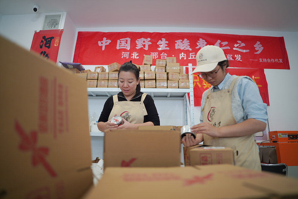 “双十一”临近,河北省内丘县迎来电商热潮,当地特产订单大幅增加,直播间内繁忙热闹,快递共配中心有条不紊,工作人员忙着分拣、打包、装运,确保物流通畅,商品准确送达。(苏丹丹 摄)