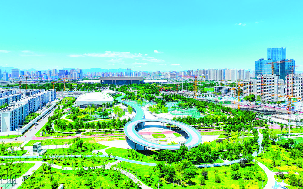 高铁片区,楼宇拔地而起,道路延展贯通,435亩的中央绿色体育公园吸引了众多市民前来休闲健身,千米长的如意彩虹空中走廊成为城市一道迷人的风景线;32号地块“城市客厅”项目总工程进度达92%,预计年内竣工。