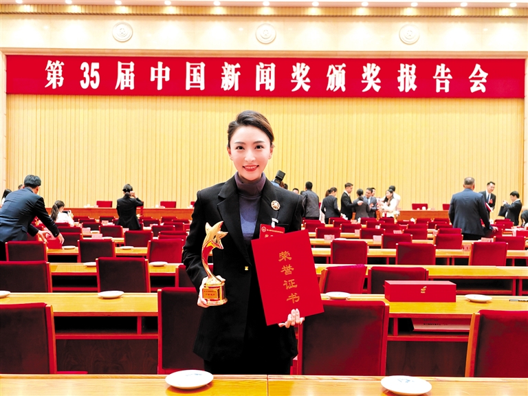 11月6日,第三十五届中国新闻奖颁奖报告会在北京举行。保定新闻传媒中心记者、《保定新闻联播》主持人霍碧莹,作为全国新闻界第十二届“好记者讲好故事”活动十佳选手上台接受表彰。她不仅是本届河北省唯一获此殊荣的新闻工作者,刷新了保定市在该赛事中的最佳成绩,更用一个个有温度的故事,诠释了新时代新闻工作者的坚守与担当。