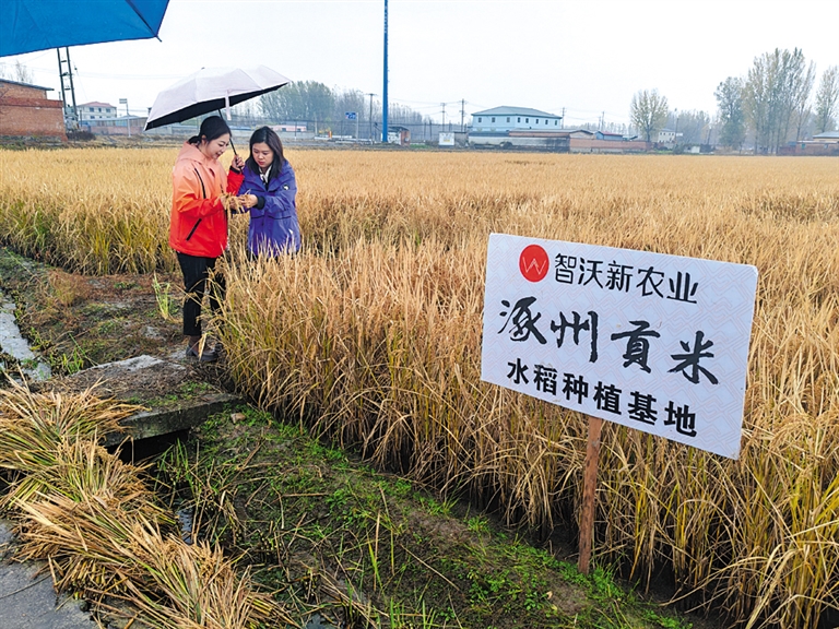 记者走访北智沃新农业发展有限公司的涿州贡米种植基地。 马宁 摄
