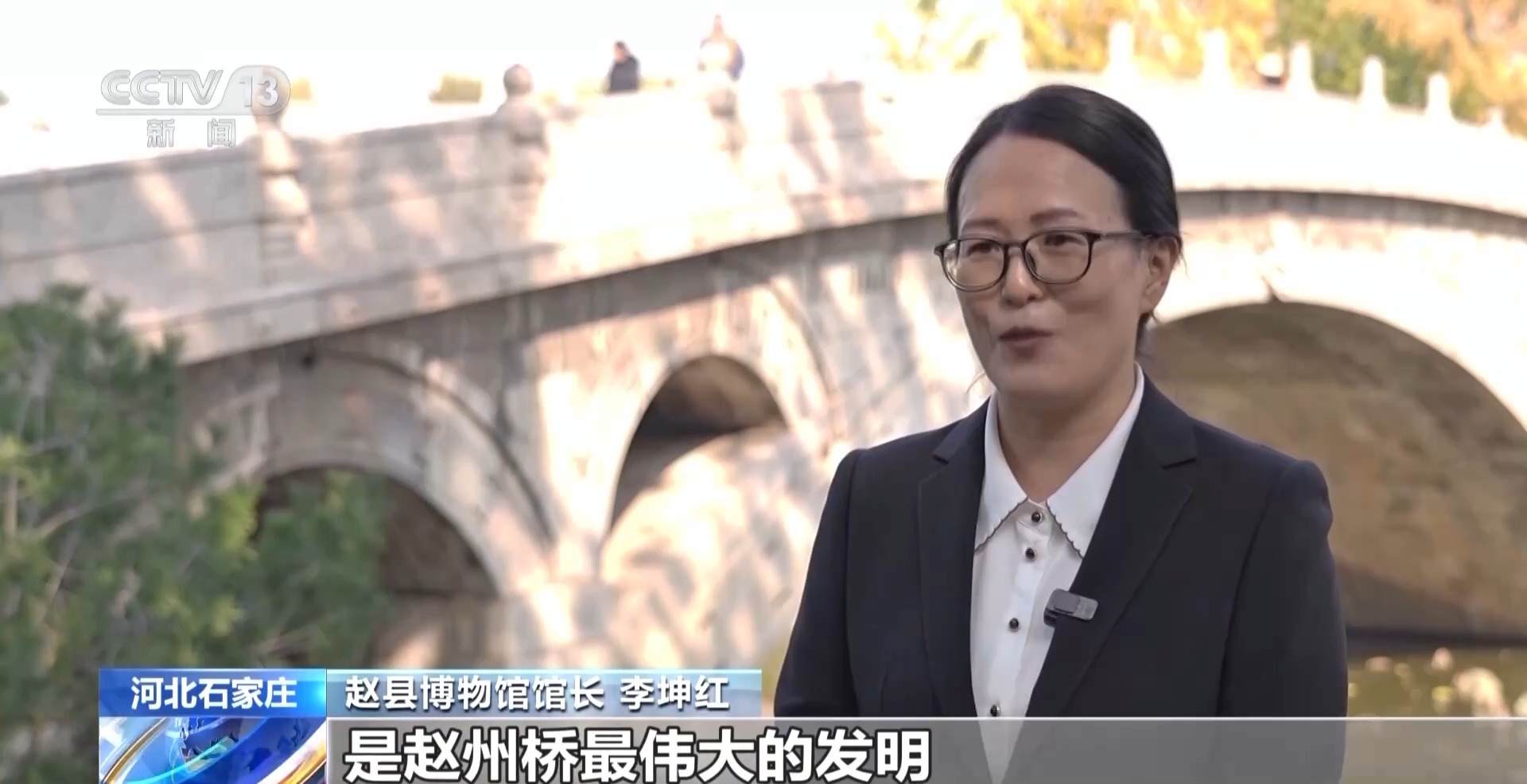 赵县博物馆馆长 李坤红:敞肩拱的创举是赵州桥最伟大的发明。在此之前,石拱桥桥肩上面大都是用石头填满,沉重且阻水。而李春创造性地在赵州桥的肩上面设计了一大一小两个拱,这便是“敞肩拱”设计。