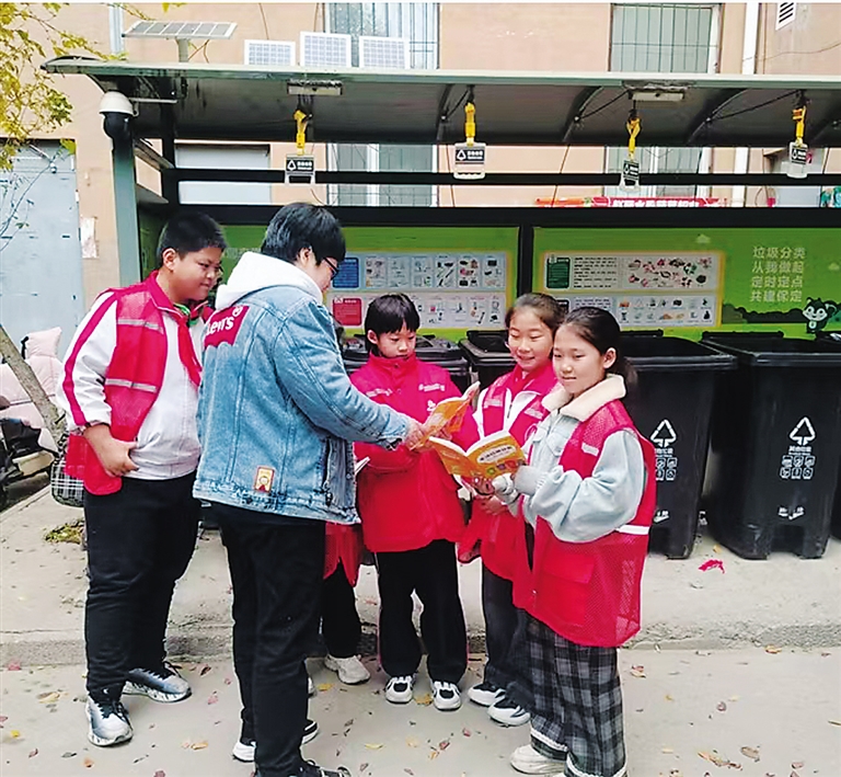 竞秀区话剧院社区近日联合保定市花园街小学,开展“垃圾分类宣传进小区”主题活动。孩子们化身“小小宣传员”,身着志愿者马甲、手持宣传手册,向居民生动讲解垃圾分类标准、投放技巧及环保意义,耐心解答各类分类疑问,赢得居民们点赞。