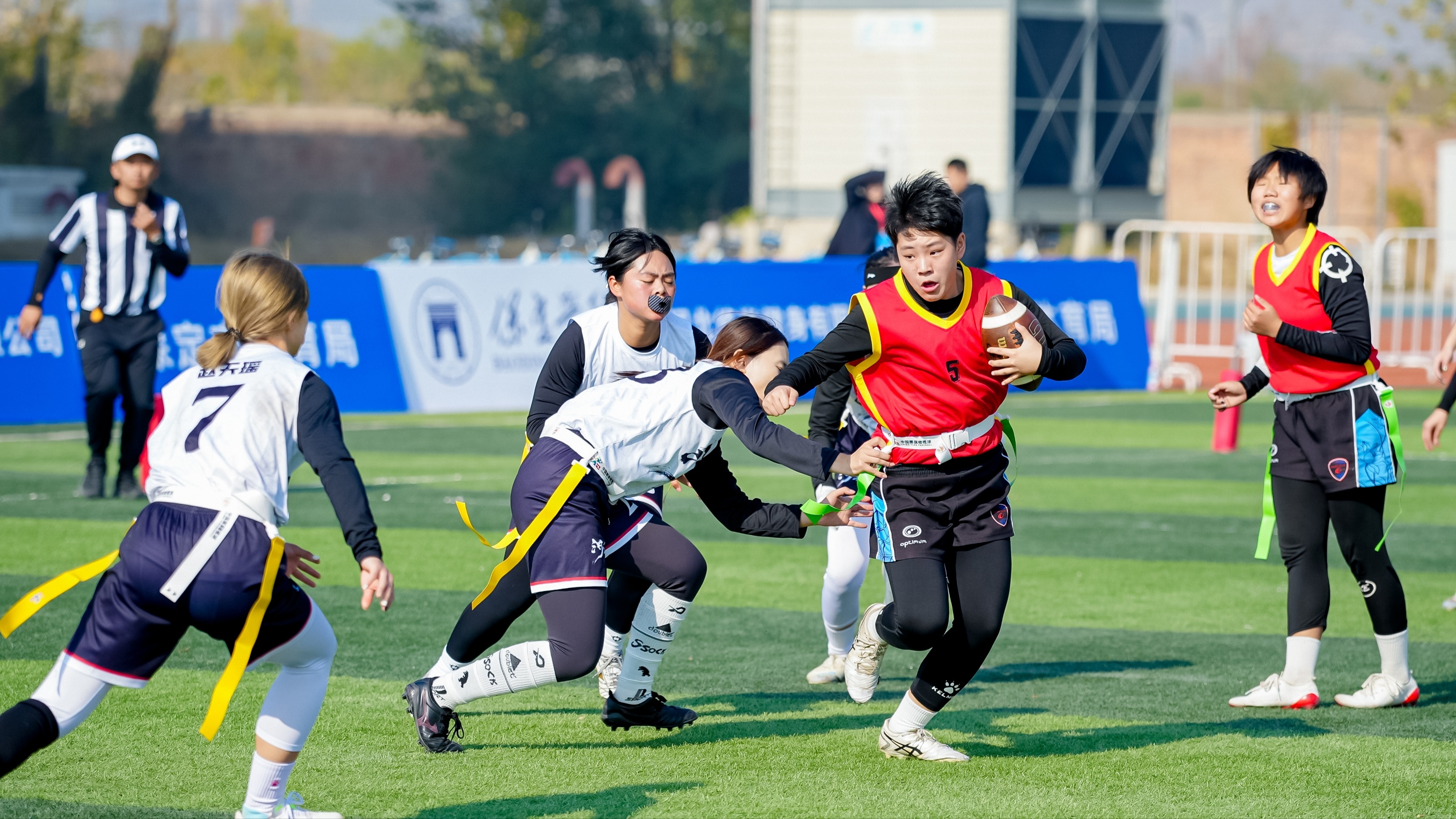 市橄榄球协会会长段红娟说,腰旗橄榄球既保留了美式橄榄球的核心打法与激情,又以规则简化、安全性高降低了参与门槛,适合全年龄段,近年来吸引越来越多的青少年参与其中。