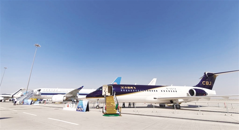 据了解,在航展现场的静态展示区,中国南方航空的C919飞机和中国商飞的C909公务机同台登场。这架南方航空的C919飞机采用164座三舱布局。C909公务机舱内空间宽敞舒适,可灵活设置休息区、会客区、会议区、就餐区等功能布局,提供12至29座配置方案,能够满足客户多样化出行需求。