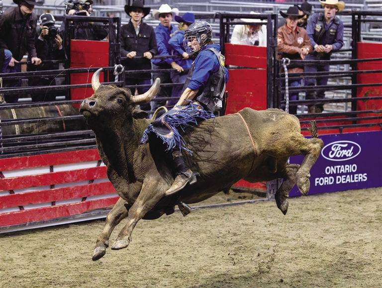 当日,在加拿大多伦多举行的2025年加拿大皇家赛马节进行牛仔竞技赛,30余名来自加拿大各地的牛仔参加了骑牛竞技、骑马竞技、绕杆竞速、绕桶竞速与骑马救援等项比赛。