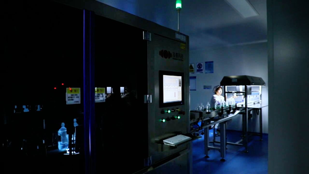 在检验环节,一个“大块头”闪光灯快速闪烁,氯化钠以每分钟400瓶的速度“跑”进“暗室”。