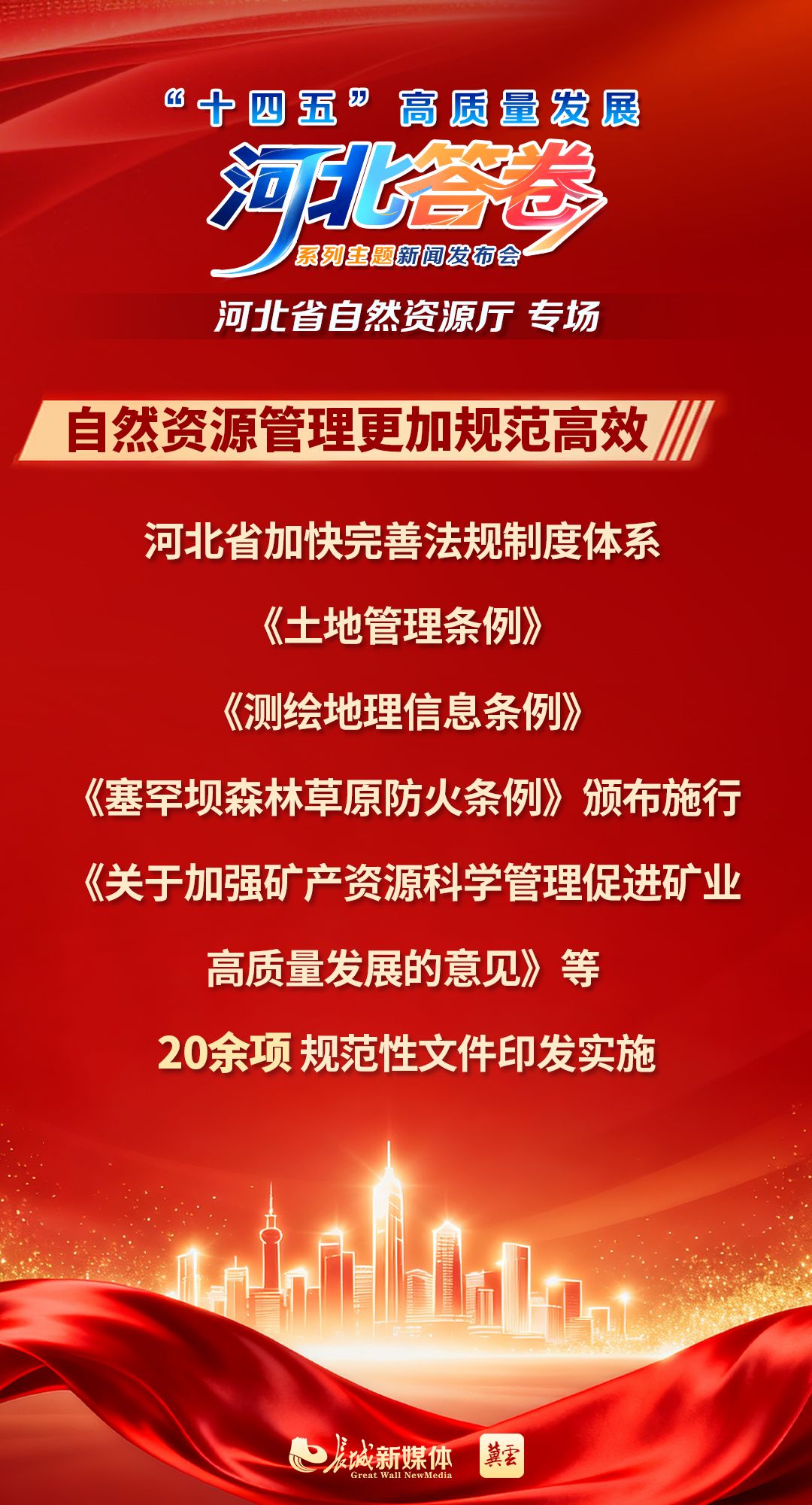 11月17日,河北省政府新闻办举办“十四五”高质量发展河北答卷系列主题新闻发布会河北省自然资源厅专场,介绍全省“十四五”时期自然资源工作高质量发展成效。