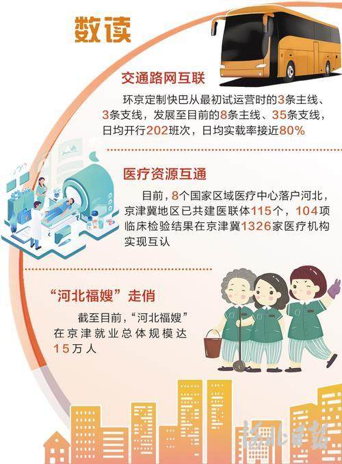 平均每天7500人次乘坐环京定制快巴往返于京冀,实现1小时通勤;先后有420多位北京专家下沉北京儿童医院保定医院,解决疑难杂症;15万名“河北福嫂”实现就业的同时,也为京津家庭解忧愁。