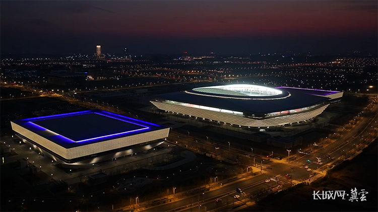雄安体育中心夜景航拍。马宁 摄