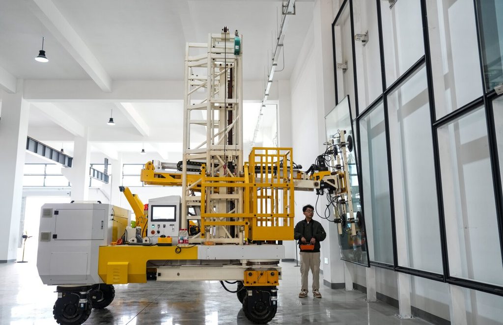2024年,他们研制出面向高、中、低空全场景建筑施工环境的系列化大中型智能建筑板材安装机器人,解决了高精度曲面、多规格大尺寸幕墙混合安装行业难题,较国内外同类产品载荷、安装尺寸、作业效率和精度均提升1倍以上。