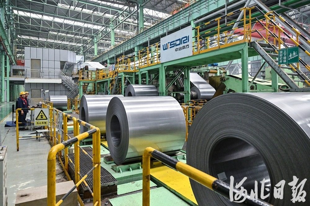 河北太行钢铁集团有限公司的工人在酸镀锌铝镁联合生产线作业。(河北日报资料片)河北日报记者 田明摄