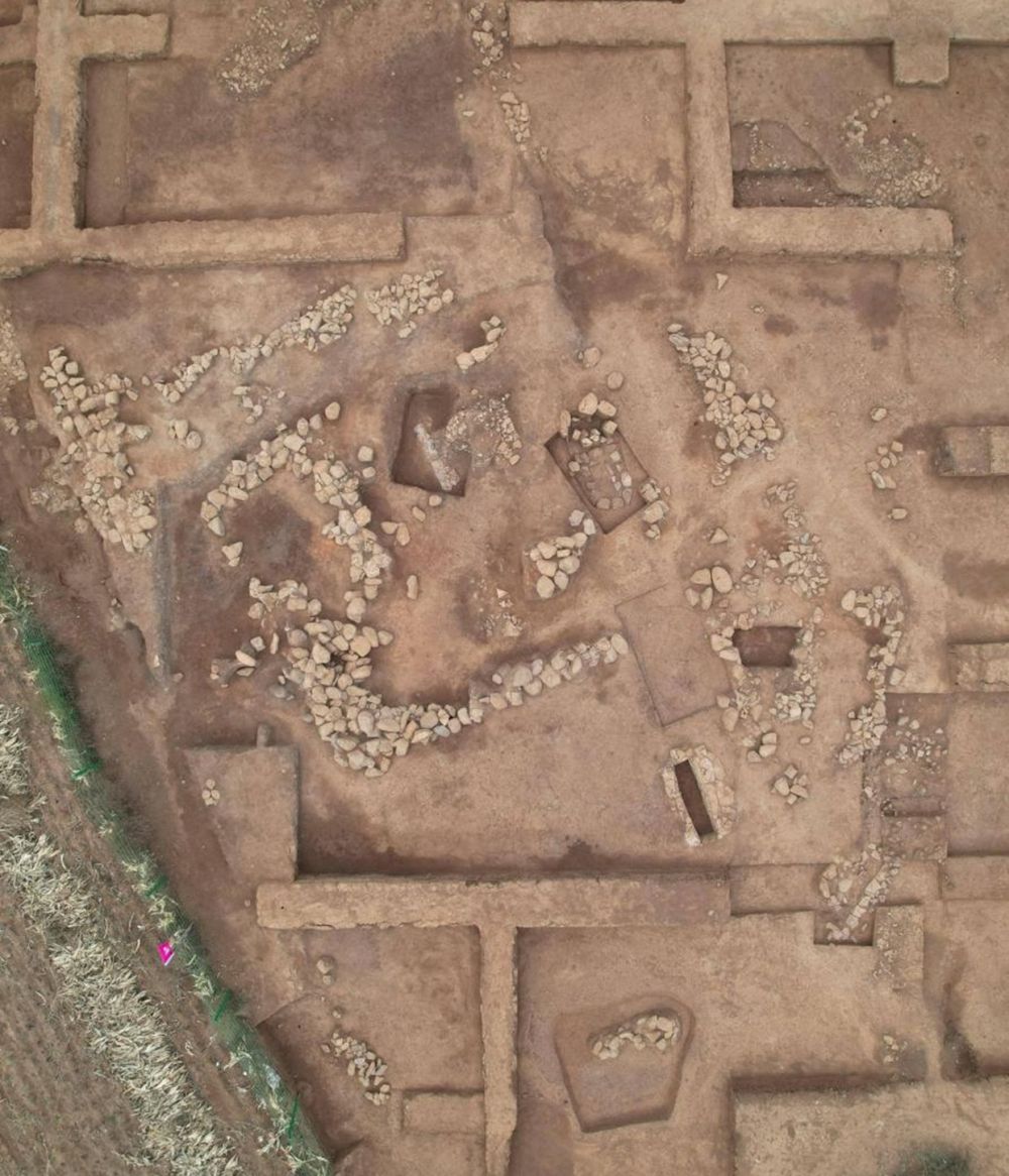 据了解,该遗址分为积石冢墓葬区和祭祀区,分为上、下两层文化堆积。其中,下层文化堆积的东南部为长方形积石冢墓葬区,西北部疑似祭祀区;在上层文化堆积中,积石冢面积有所扩大,结构由长方形变为圆形,冢的东南部为祭祀区。