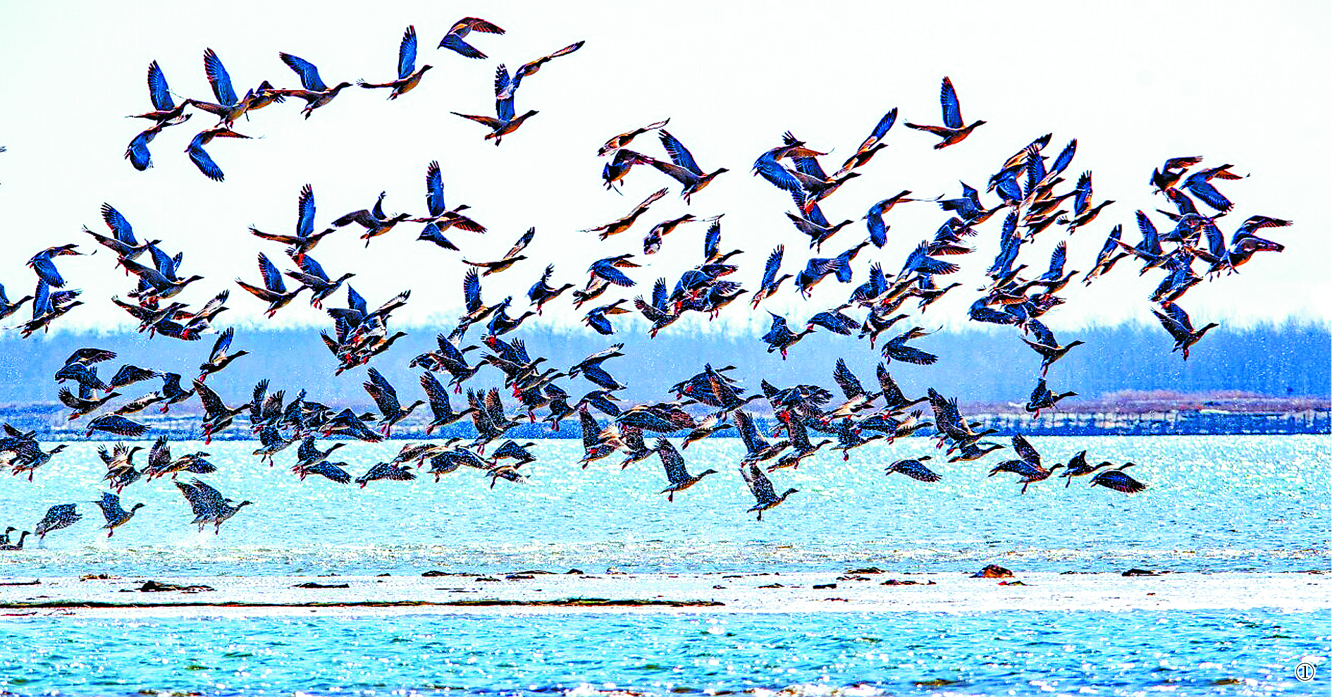 七里海潟湖处于东亚—澳大利西亚候鸟迁徙通道上,每年10月和11月,都会有大批候鸟飞临这里中转停歇,再向南迁徙。