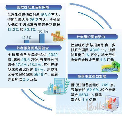 社会救助是保障基本民生、促进社会公平正义、维护社会稳定的基础性制度安排。省民政厅党组成员、副厅长张晓妍介绍,“十四五”以来,我省常态化保障低保对象158.9万人,特困供养人员26.2万人,全省城乡低保平均标准五年来分别增长12.3%和30.1%。