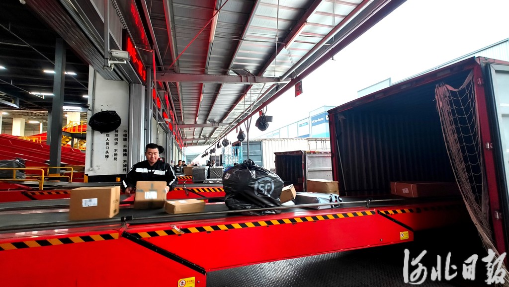11月10日,廊坊顺丰速运有限公司转运中心内,工人们正在准备装车。河北日报记者刘英摄