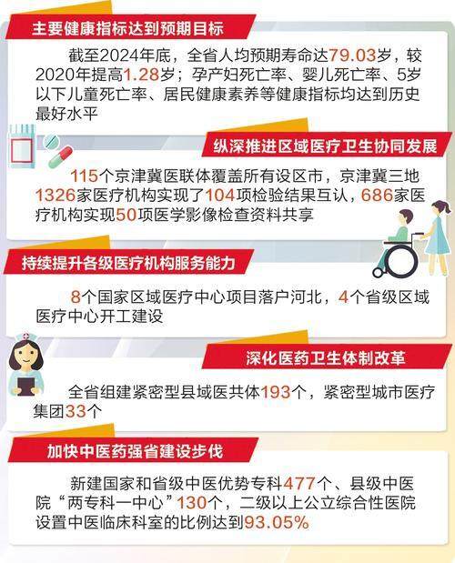 持续提升各级医疗机构服务能力。“十四五”时期,8个国家区域医疗中心项目落户河北,累计引进新技术和新项目919项,填补省内空白130项。分三批建设115个京津冀医联体,覆盖所有设区市。推动省域资源下沉基层,一方面,持续开展城市医院对口帮扶,目前有81家三级医院“组团式”帮扶204家县级医院;另一方面,筑牢县域医疗服务根基,全省140个县(市、区)全部组建紧密型县域医共体,通过一体化管理、融合式发展,实现人才、技术、设备、药品等资源纵向贯通、集约共享,推动县域医疗资源配置更加均衡。截至目前,县域内就诊率达到67.54%,急危重症抢救能力显著提高,牵头医院出院患者三四级手术比例达到66.92%;基层医疗卫生机构病床使用率明显提升,患者向县域外流的情况得到缓解。