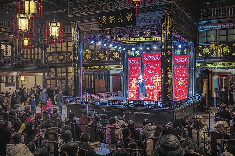保定市淮军公所博物馆听大戏。 罗大庆 摄