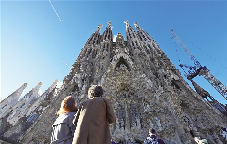 西班牙巴塞罗那地标建筑圣家族大教堂(圣家堂)由西班牙著名建筑师高迪设计,从1882年开始修建至今,预计将于2030年竣工。