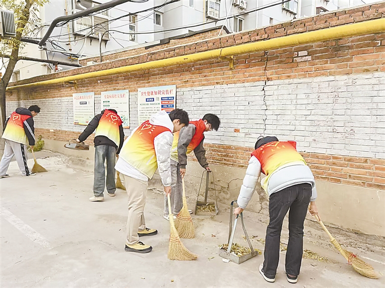 活动现场,大学生志愿者们在社区工作人员的带领下,带着扫帚、铁锹、垃圾袋等工具准时集结。大家分工协作,清扫落叶、纸屑等散落垃圾,针对墙角、停车区域周边等卫生死角进行地毯式清理,不放过任何细小垃圾。清扫过程中,志愿者们热情高涨,不怕脏、不怕累的身影成为社区里一道亮丽的风景线。