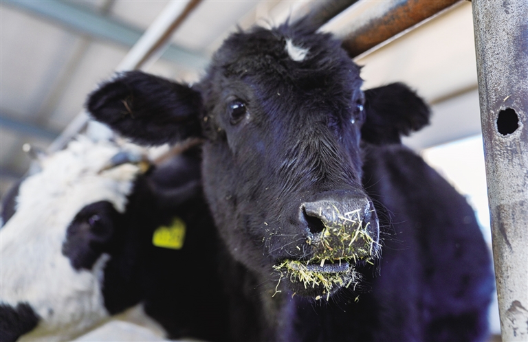这是12月3日在西藏动物疫控中心(区畜牧总站)曲水实验站牛场拍摄的克隆樟木牛母犊。