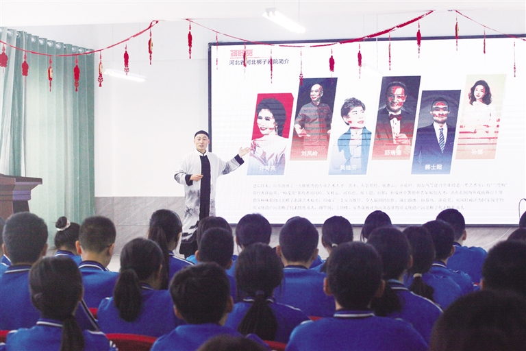 同时,剧院特别结合保定深厚的文化底蕴和独有的戏曲积淀,以“熟悉地方戏曲、弘扬传统艺术、传承非遗文化”为目标,携手北京中艺艺术基金会、河北省河北梆子剧院,特别策划“梨园薪火传 名家进校园”河北梆子公益系列活动。活动邀请梅花奖得主郝士超走进冀英中学,为学生讲解河北梆子的艺术特色,带领学生体验戏曲武生的程式之美。还首次推出河北梆子《宝莲灯》名家课堂版,由梅花奖得主郝士超、邱瑞德,国家一级演员丁云飞、张警月领衔主演,通过“演+讲+互动”相结合的全新形式,将整场剧目的精华部分提炼浓缩,借助主持人讲解与互动串联起剧情发展。讲解与互动中,不仅包含“生、旦、净、丑”的行当特色,还有剧中人物的服装展示,现场乐队的乐器讲解,以及“圣母舞剑”“伏虎降龙”“劈山救母”等经典场景导赏。